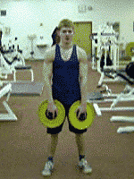 Střídavé předpažování s jednoručkami Zatížení: Přední hlava deltových svalů, ramena.